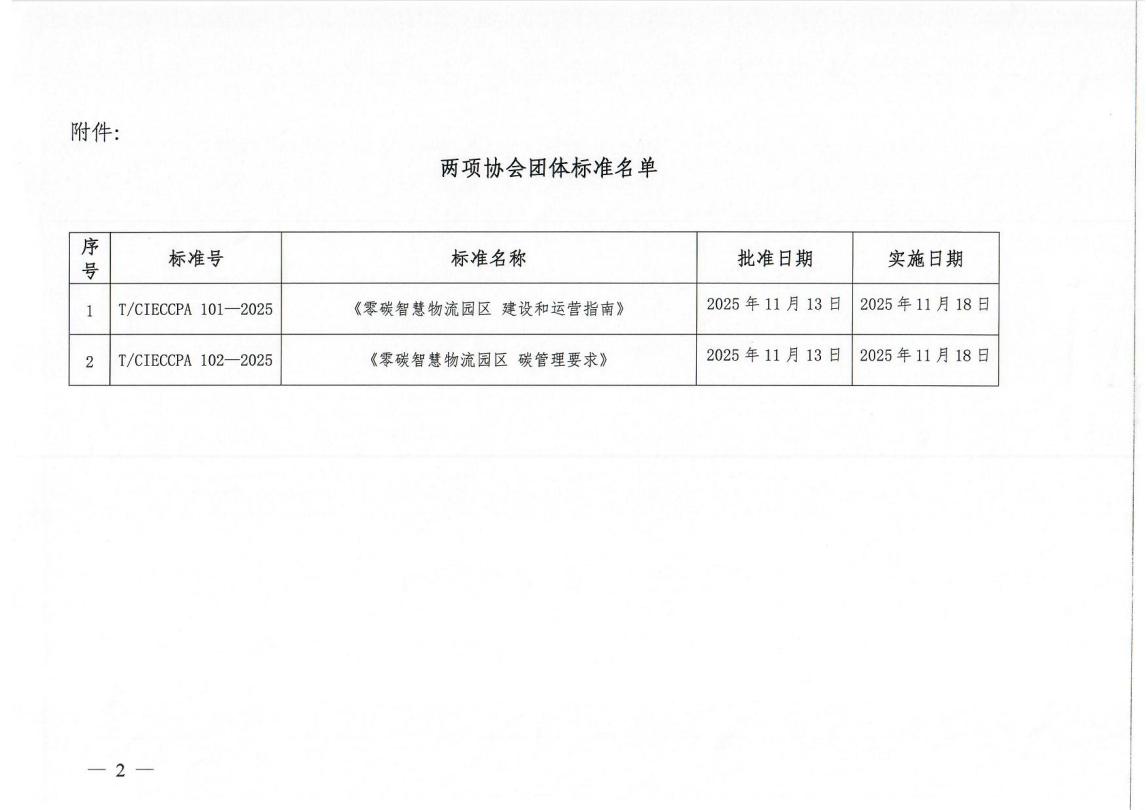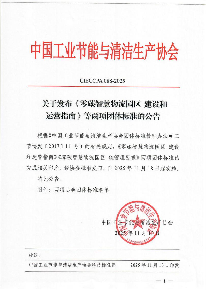 关于发布《零碳智慧物流园区 建设和运营指南》等两项团体标准的公告
