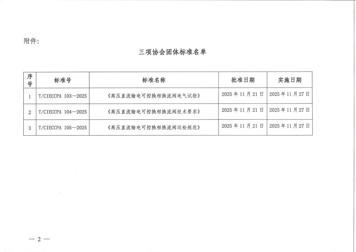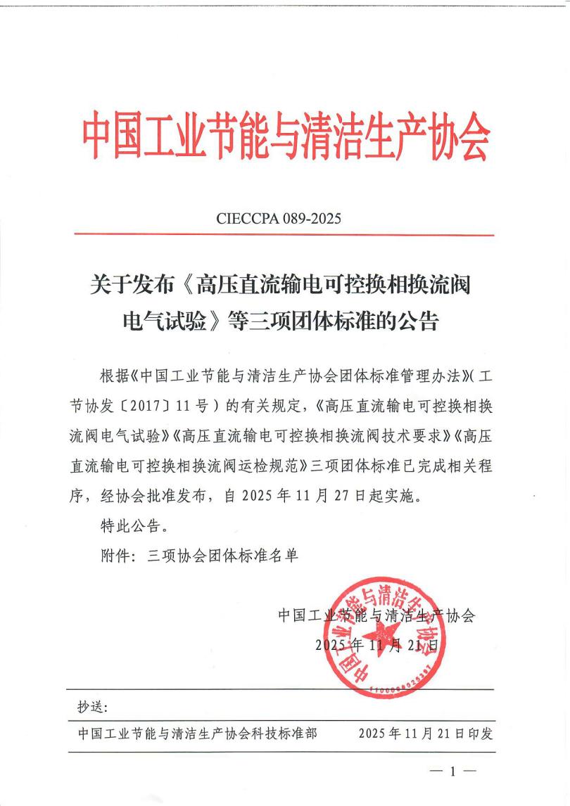 关于发布《高压直流输电可控换相换流阀电气试验》等三项团体标准的公告