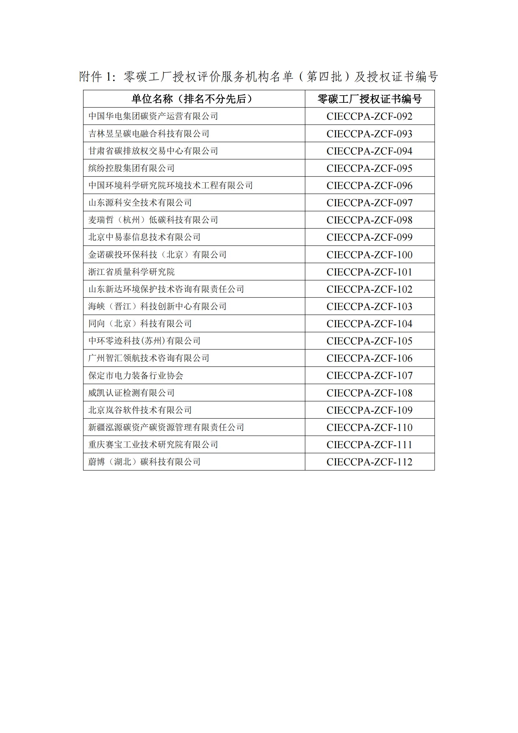 零碳工厂园区授权评价认证服务机构名单(第四批)及授权证书编号公告