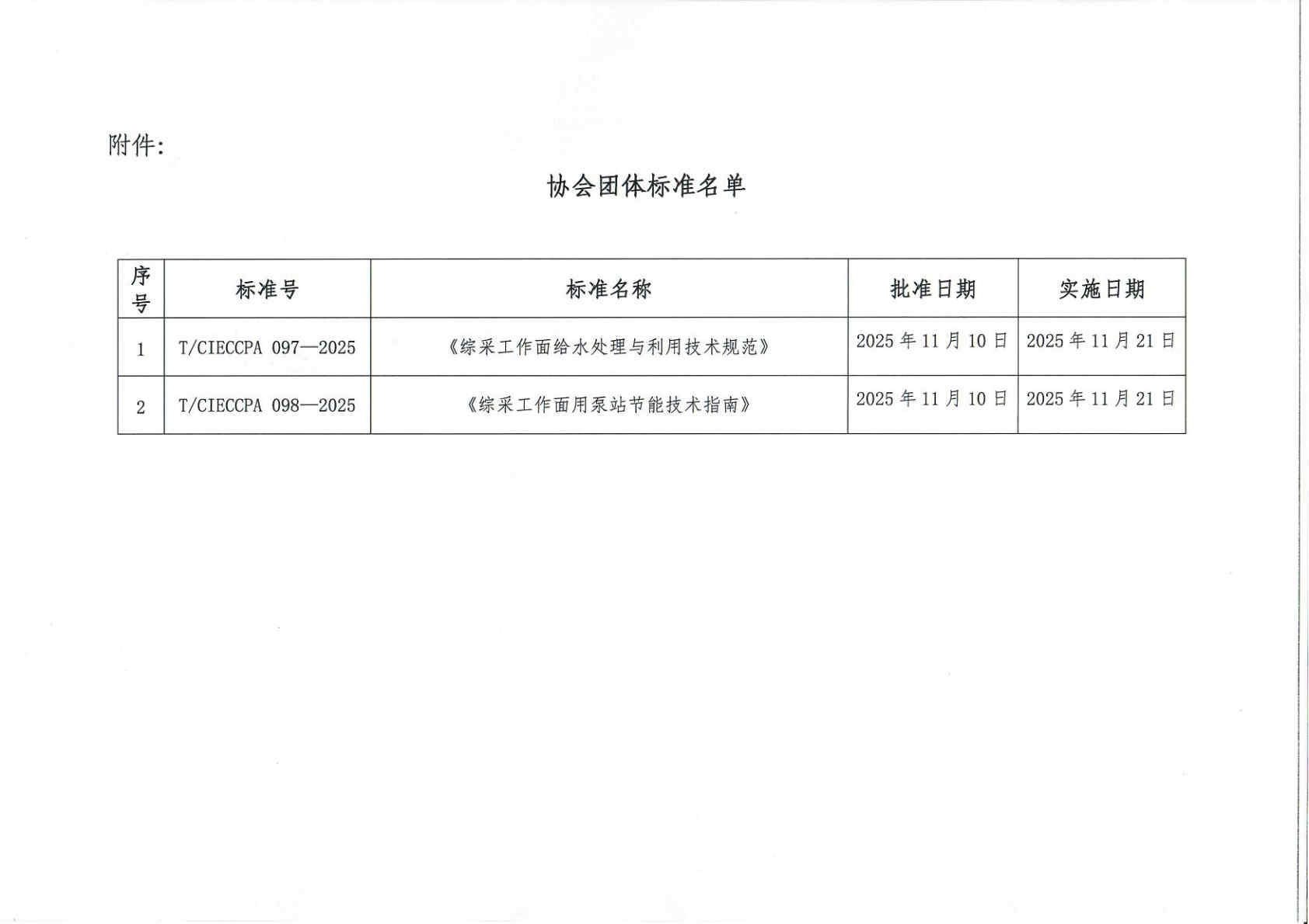 关于发布《综采工作面给水处理与利用技术规范》等两项团体标准的公告