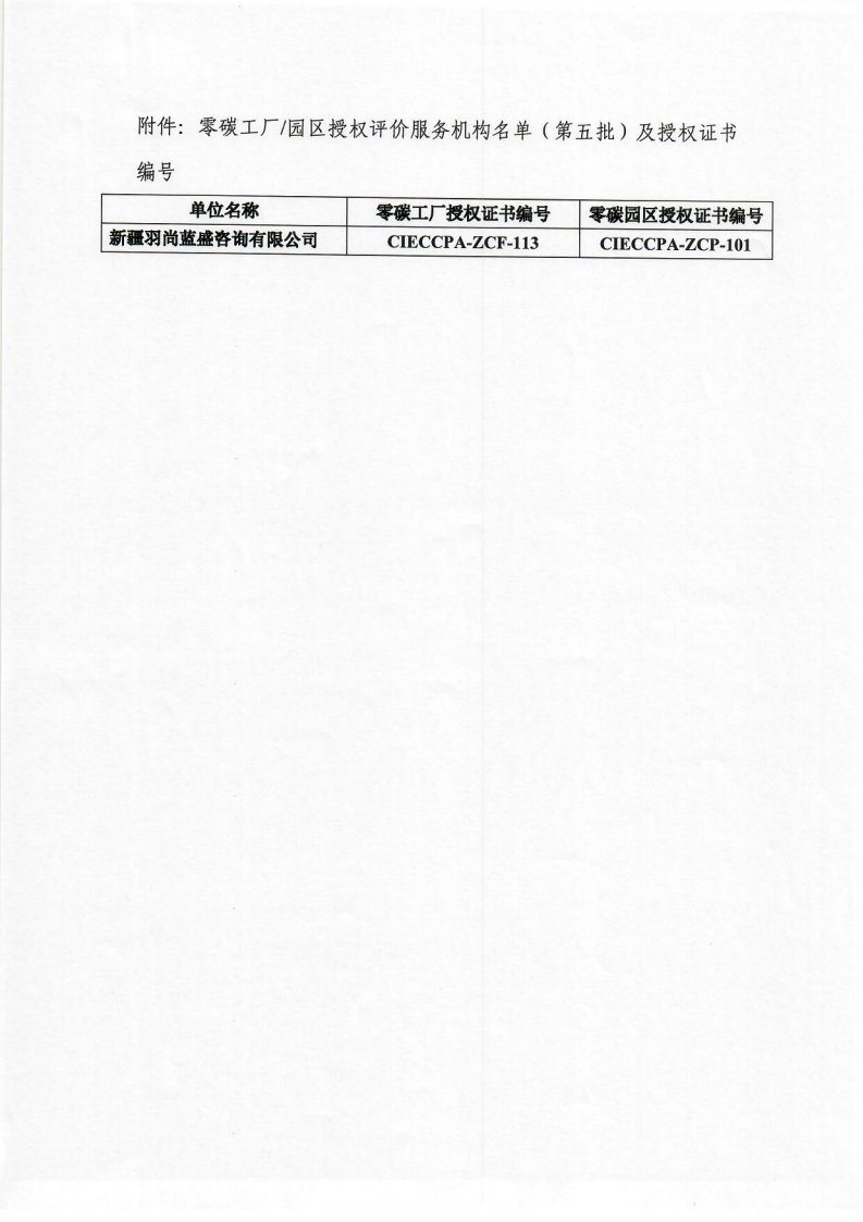 零碳工厂园区授权评价认证服务机构名单(第五批)及授权证书编号公告