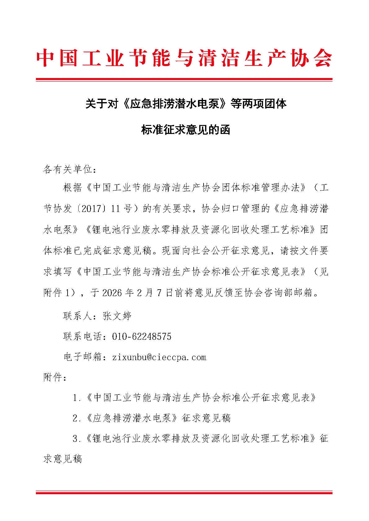 关于对《应急排涝潜水电泵》等两项团体标准征求意见的函