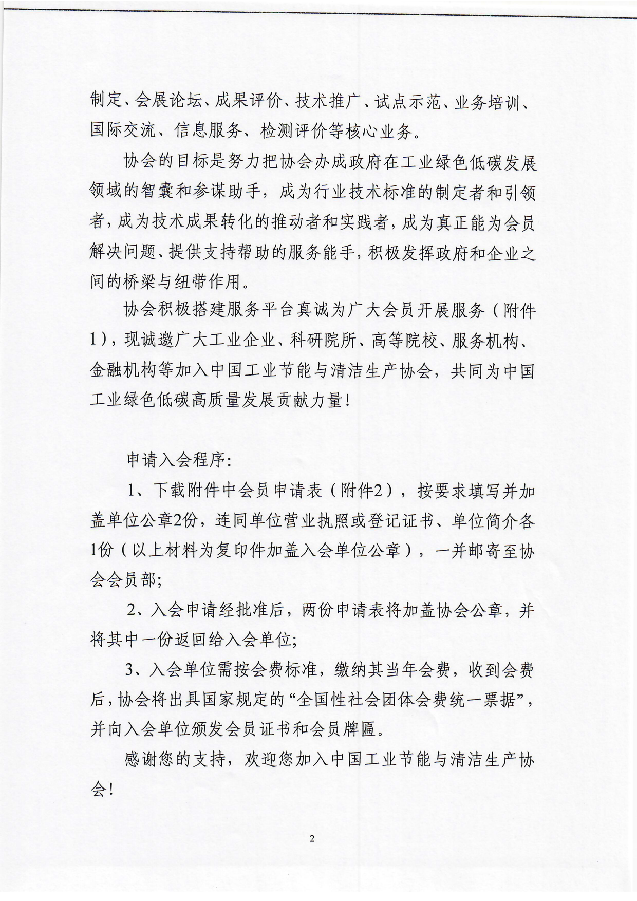 关于诚邀加入中国工业节能与清洁生产协会的通知