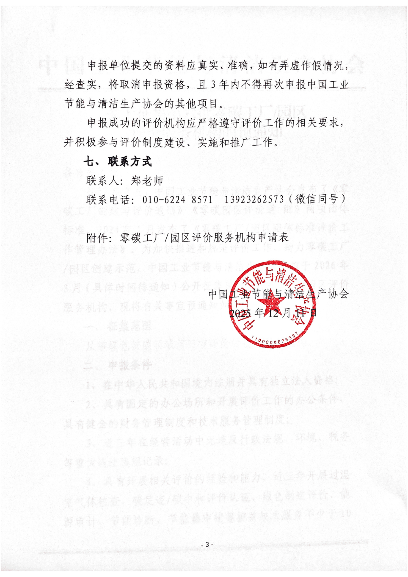 关于征集第六批零碳工厂/园区评价服务机构的预通知