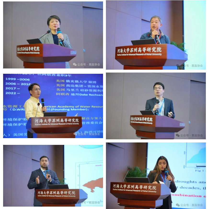 主旨报告环节,专家们高屋建瓴的分享引发在场观众一阵阵热烈的掌声。太湖流域管理局水利发展研究中心副主任李敏带来《再生水配置调研报告》,为优化区域水资源配置提供了重要的数据支撑与决策依据。天津大学海水淡化与膜技术研究中心教授解利昕介绍了《海水淡化技术进展》,阐明了海水淡化领域的最新科研动态。美国水资源工程师院资深认证工程师苏雨明分享了《雨水的存储与利用及一些国际推广与实践探讨》,阐释了雨水的资源价值与开发潜力。江苏久吾高科技股份有限公司副总经理、正高级工程师彭文博带来《膜集成技术在工业废水中的应用》,集中展示了膜技术驱动工业节水减排的关键作用。外籍专家别赫德·布尔汉诺夫和苏卡伊娜·扎乌伊分别介绍了《气候变化对乌兹别克斯坦塔什干区域小麦可持续水资源管理预测(2020- 2100)》及《摩洛哥的非常规水处理方法和国家可持续管理战略》,为与会者打开非常规水利用国际视野。河海大学教授张建峰就我国非常规水源利用途径与政策进行了深入解读,为非常规水利用方向绘制了清晰地推进路线。中国工业节能与清洁生产协会脱盐分会秘书长郭亮主持主旨报告。