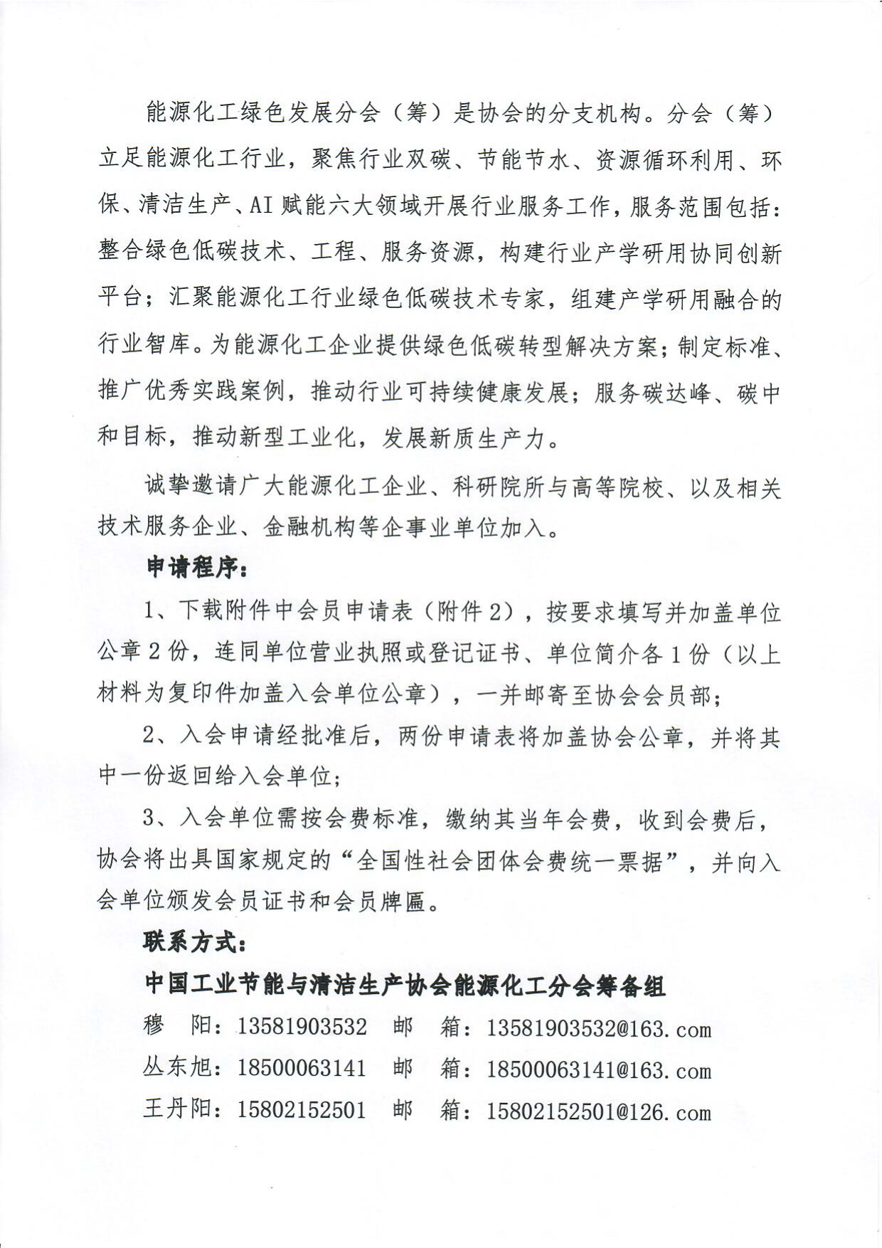 关于诚邀加入中国工业节能与清洁生产协会能源化工绿色发展分会(筹)的通知