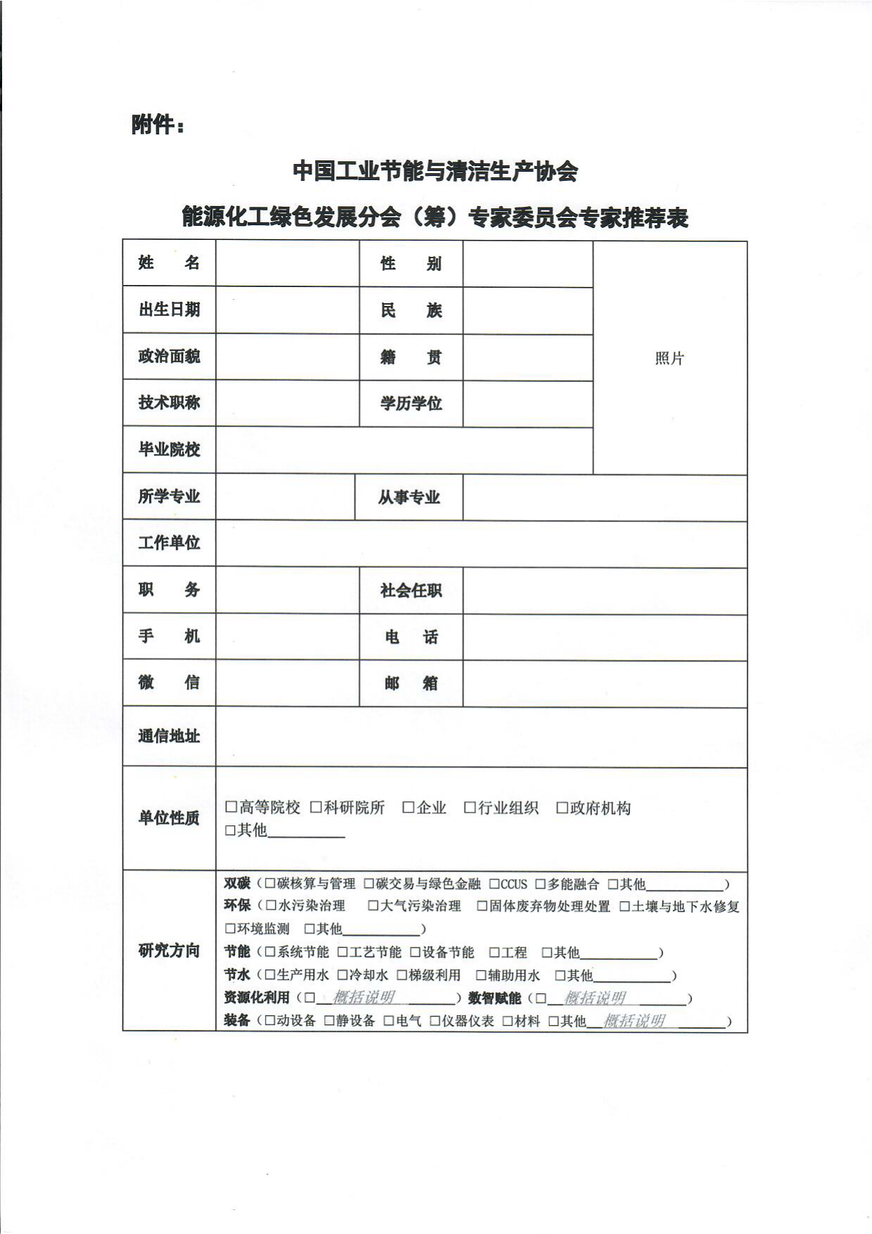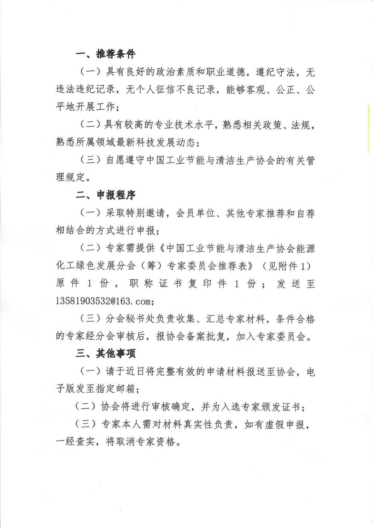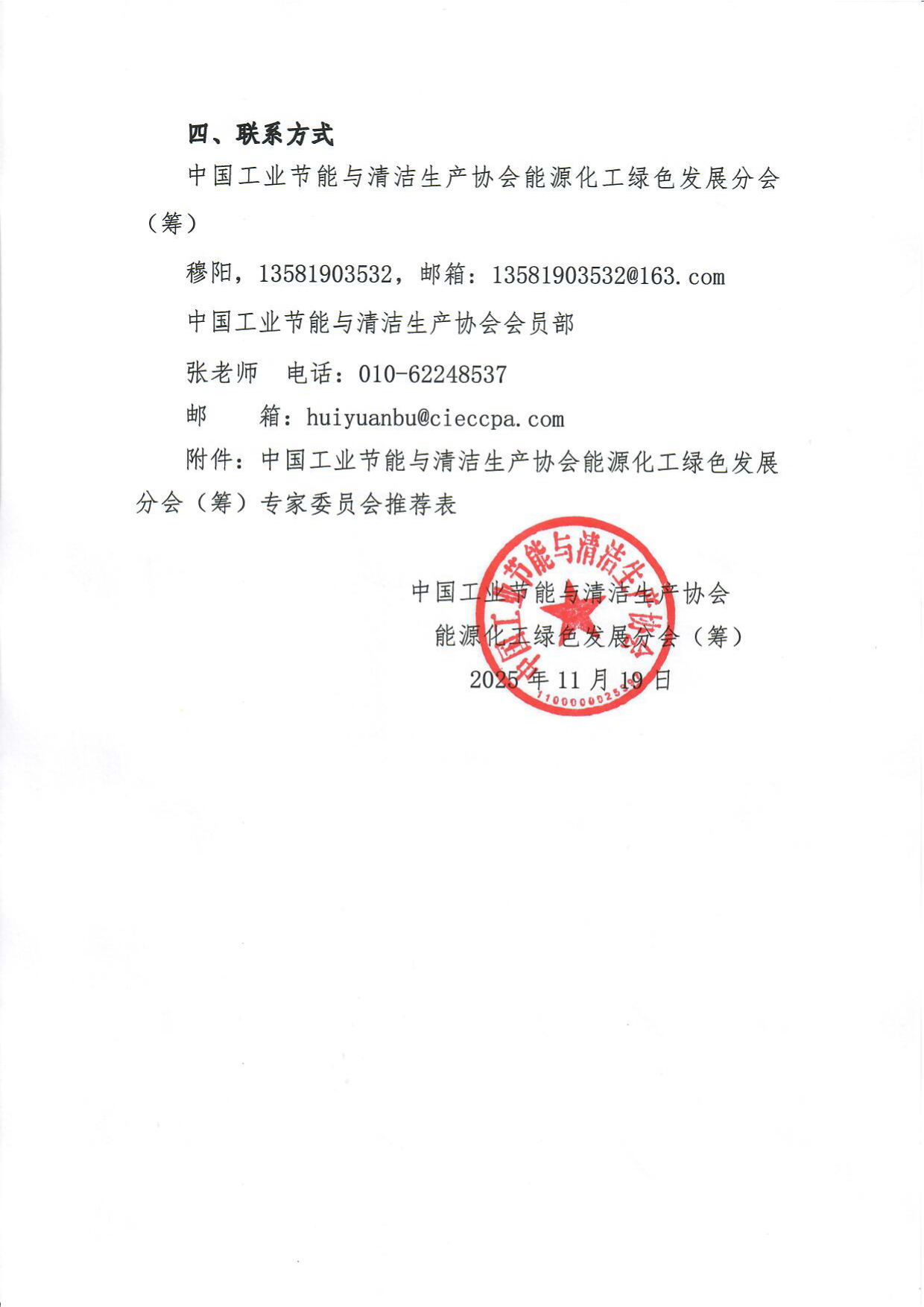 关于邀请加入中国工业节能与清洁生产协会能源化工绿色发展分会(筹)专家委员会的通知