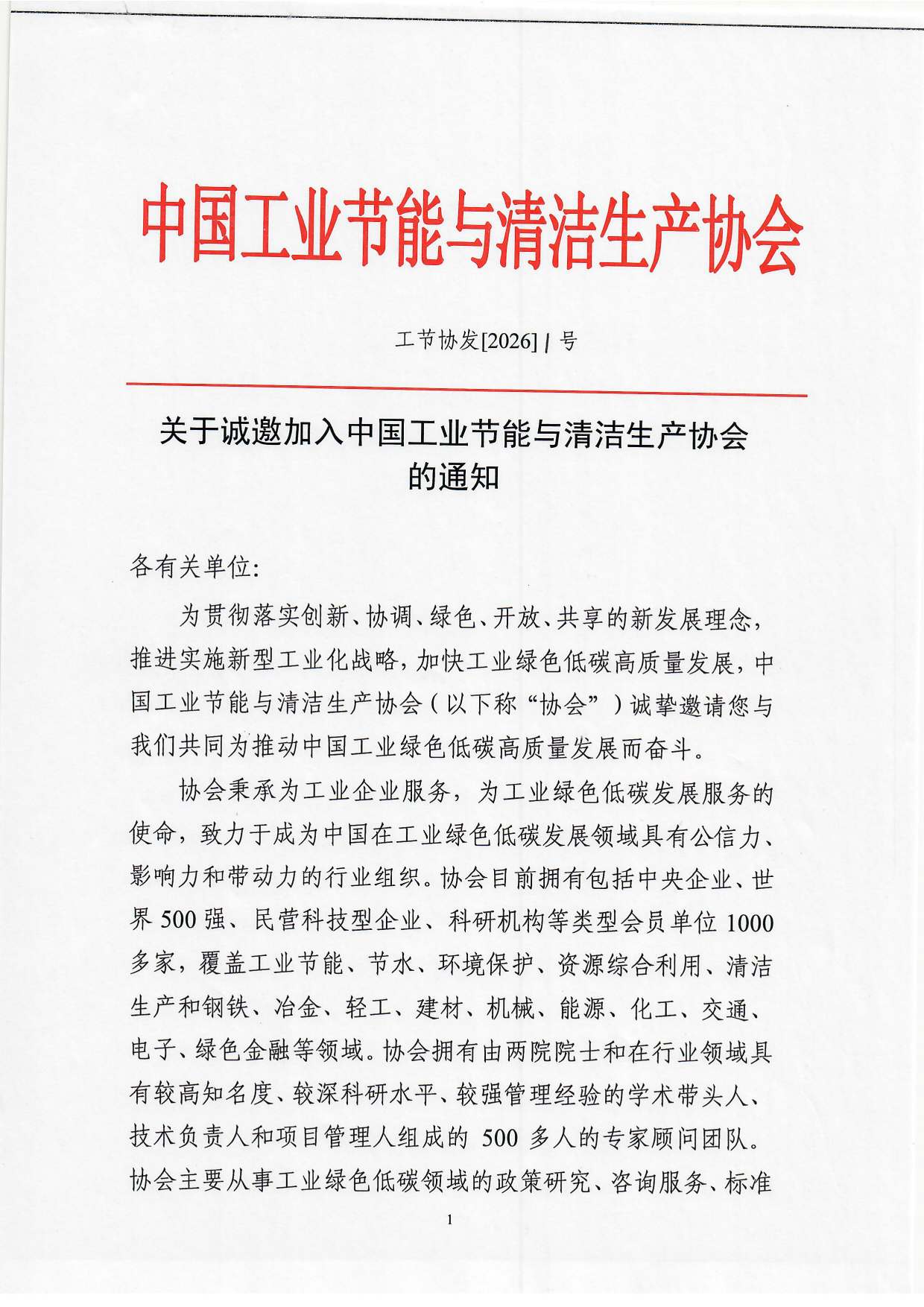 关于诚邀加入中国工业节能与清洁生产协会的通知