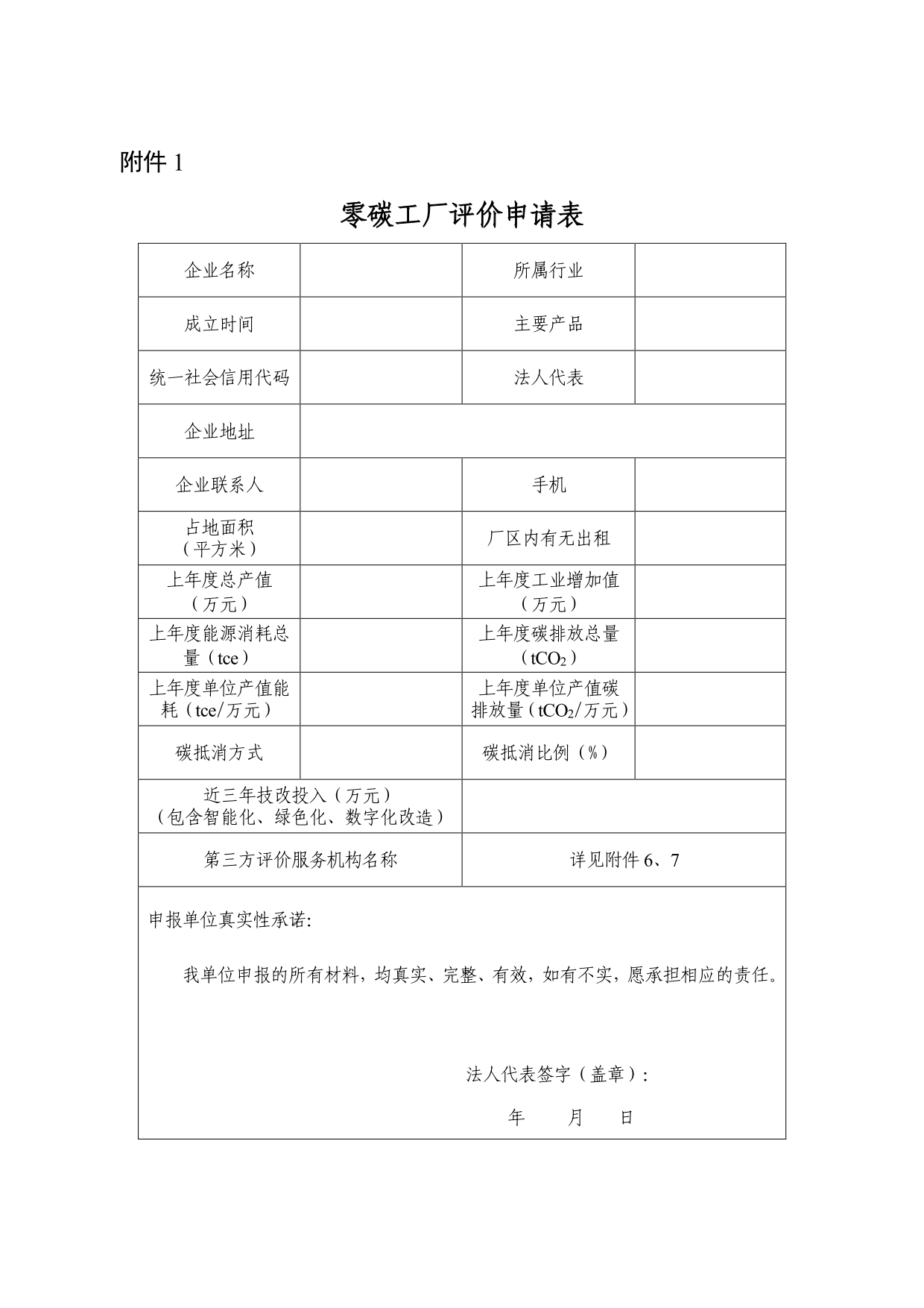 附件1 零碳工厂评价申请表