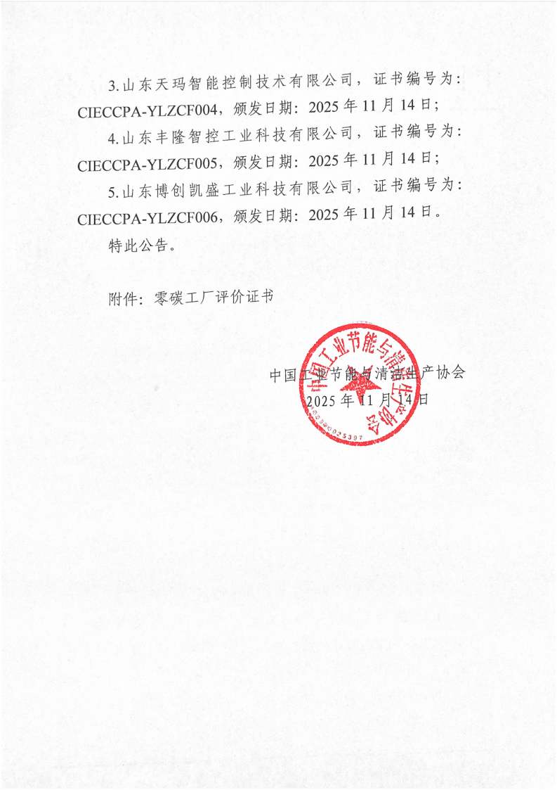 关于颁发德伯特机械(山东)有限公司等五家公司零碳工厂评价证书的公告