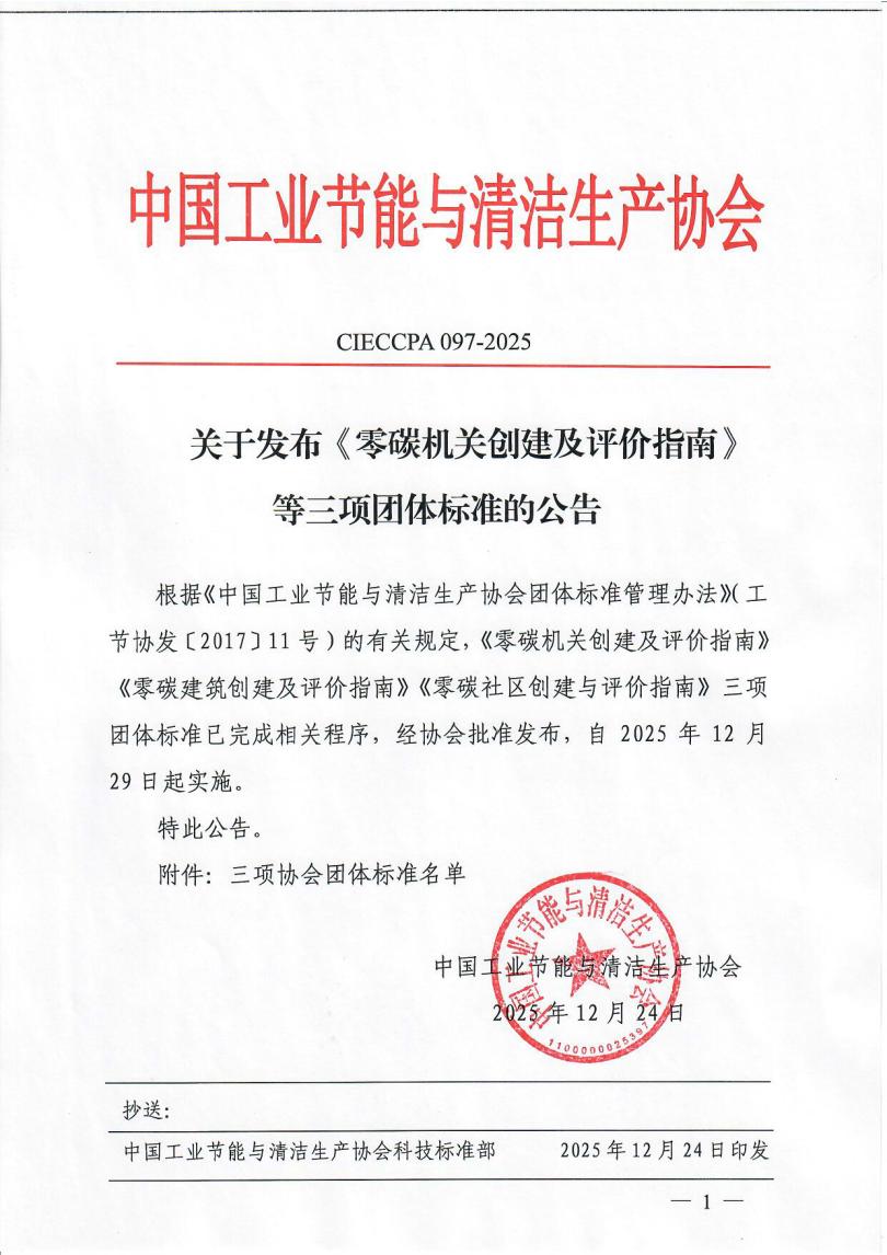 关于发布《零碳机关创建及评价指南》等三项团体标准的公告