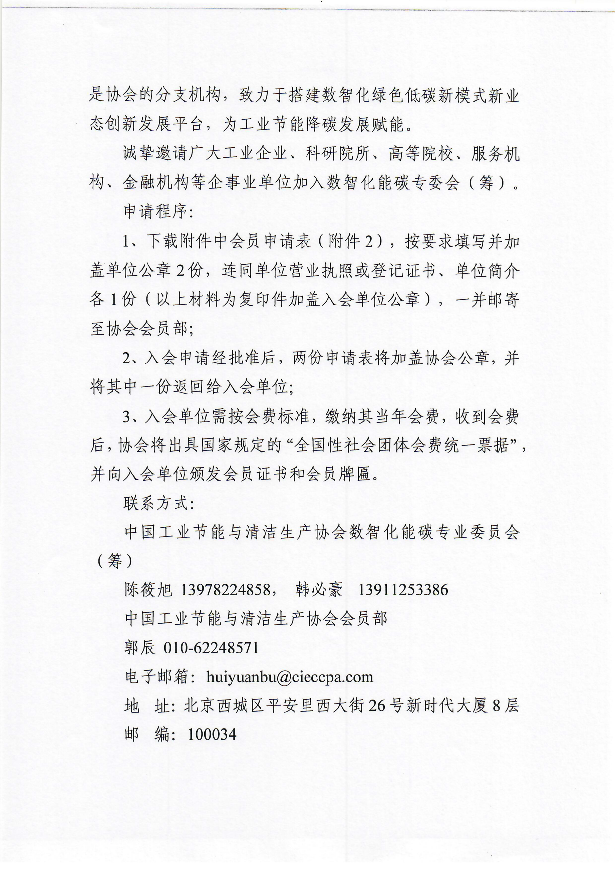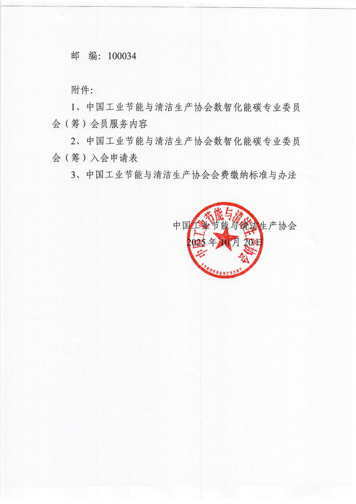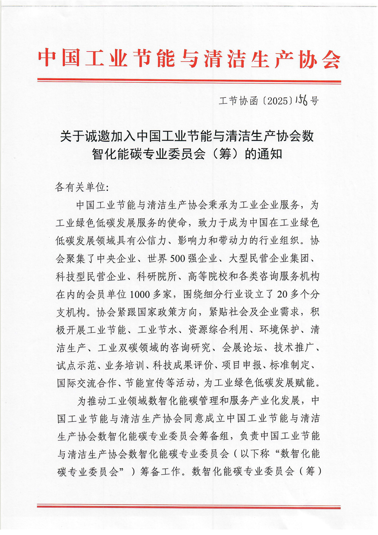 关于诚邀加入中国工业节能与清洁生产协会数智化能碳专业委员会(筹)的通知