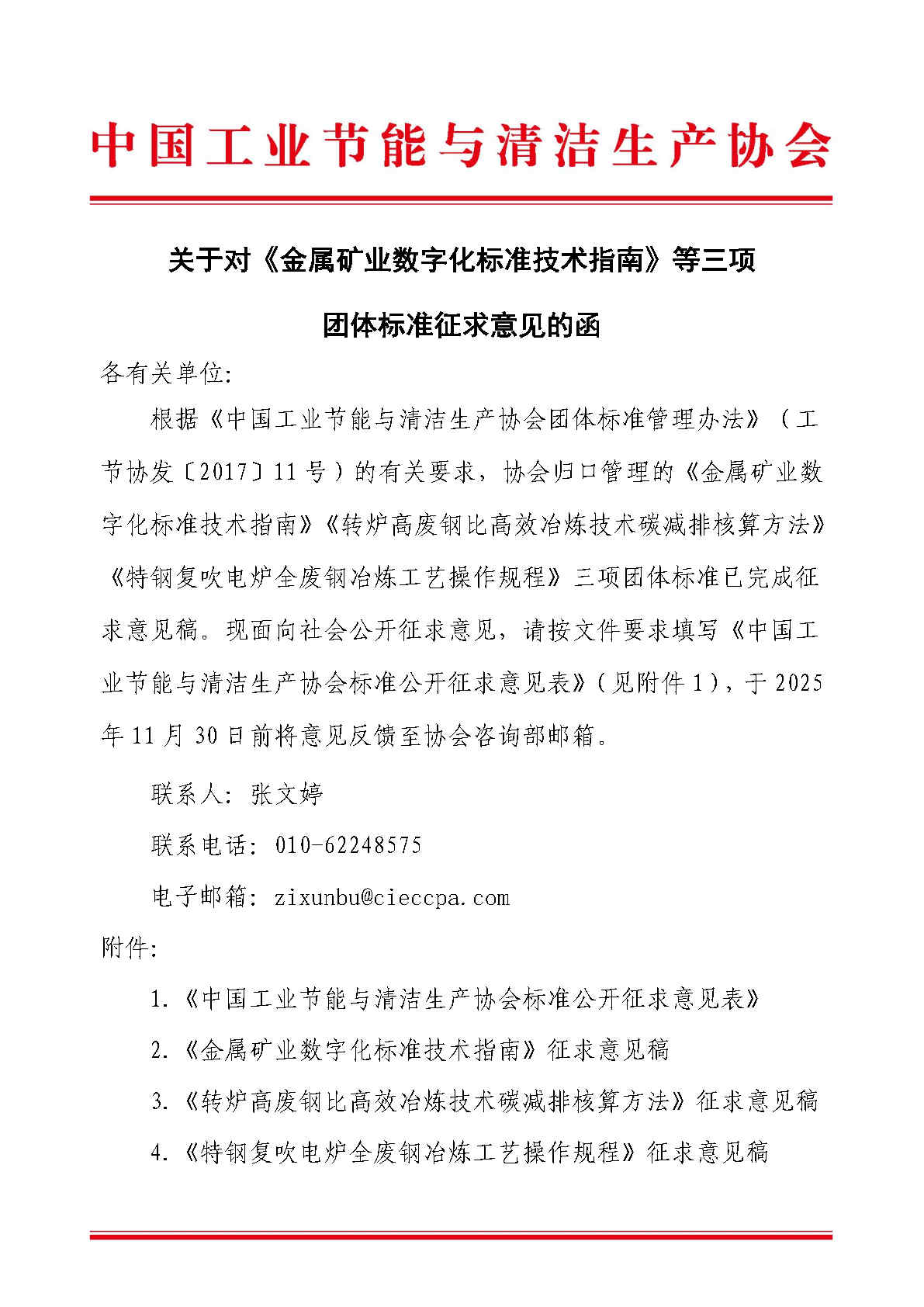 关于对《金属矿业数字化标准技术指南》等三项团体标准征求意见的函